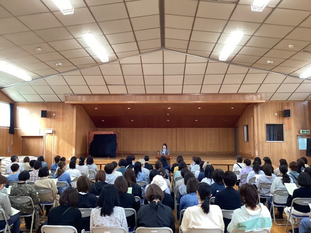 本日は御多用の中、たいへん多くの保護者の皆様に、今年度初めての本校の全体保護者会に御参加いただき、とても嬉しく思いました。