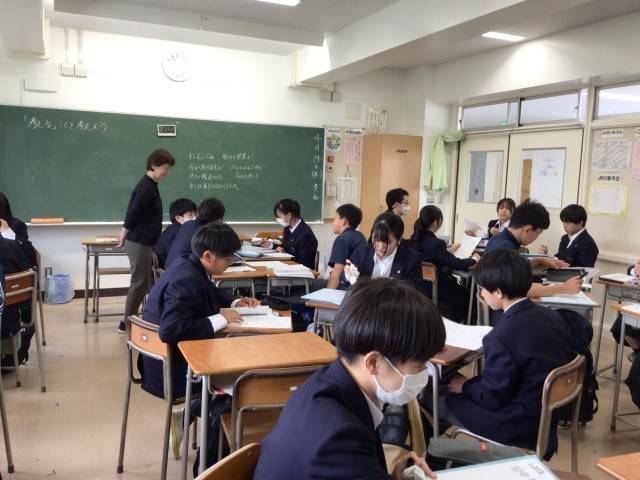 生徒たちは自分の考えを改めて意識し、お互いの問いに活発な意見を出し合っていました。