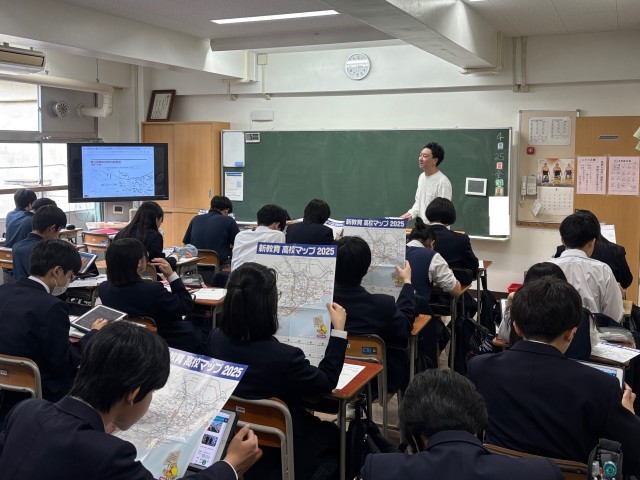 具体的には、上級学校の位置が示されている地図を見て、上中からどれくらい離れているのかを確認したり、ロイロノート活用して、上級学校の特色が分かる動画を見たり、インターネットを活用して、上級学校について検索したりしていました。