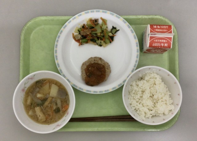 4月30日給食 公開日 2025/04/30 更新日 2025/04/30 おしらせ きょうの給食はごはん、和風ハンバーグ、キャベツと小松菜の炒り煮、根菜のみそ汁、牛乳です。和風ハンバーグには鉄分補給のために鳥の砂肝を混ぜました。大根おろしソースでごはんが進みました。 いいね(0)