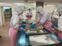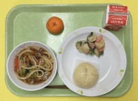 給食では、抹茶プリンを提供しました。つるんと喉越しの良いプリンは暑い日にも食べやすく、