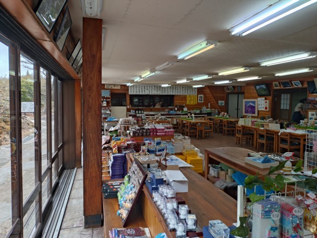 世田谷区では味わえない、外にあるトイレや、山小屋風のお土産売り場、ご飯食べる場所の天井が斜めになっていたり。