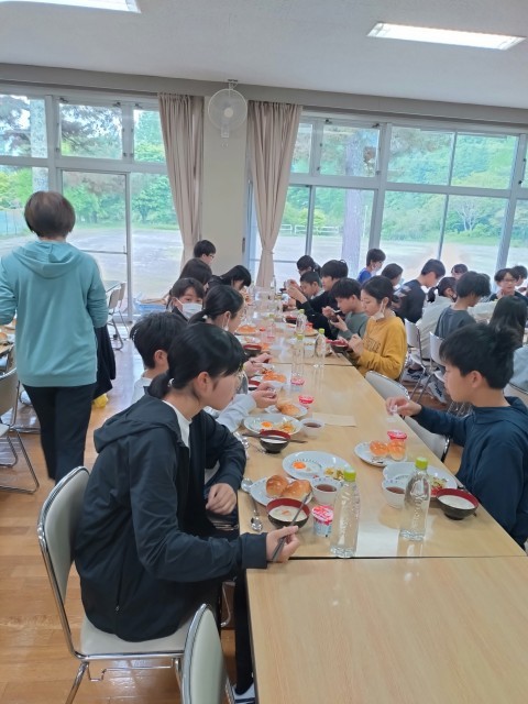 いっぱい声を出して、喉が枯れてきた生徒もいますが、元気にご飯を食べています。