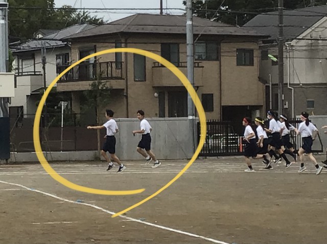 3枚目の写真のように、競技場所まで走って誘導する。