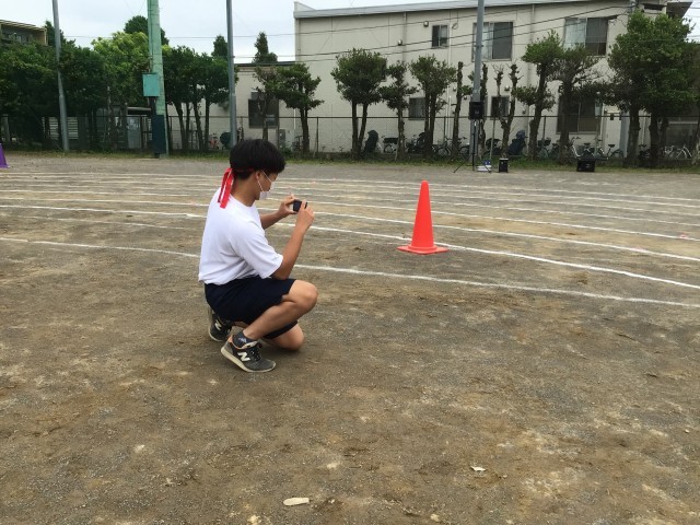 機材の準備、放送のアナウンス、音響(選曲も視聴覚委員セレクトです)、そして、競技中の生徒の様子をカメラマンとして押さる!