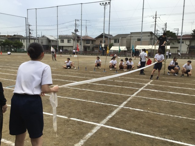 決勝審判を担当しているのは、生活委員と体育委員の女子です。
