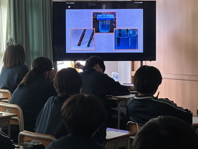 ※写真は動画でイオンの水溶液中のイオンの動きを確認している様子です。