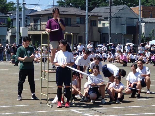 3枚目の写真で、手を挙げているのは電子ホイッスルを鳴らし、静寂の合図をしているところです。
