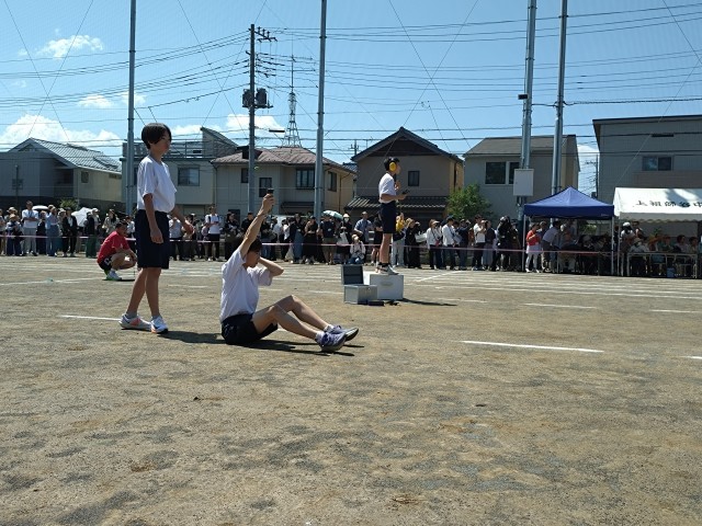 2枚目の写真で、台の足元にしゃがんでメモをとっているのは、審判係の人です。
