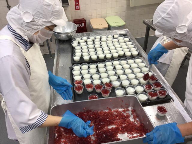 ちょっと特別なデザートが出来上がりました。生徒たちもよく食べてくれて、残菜も少なかったです。