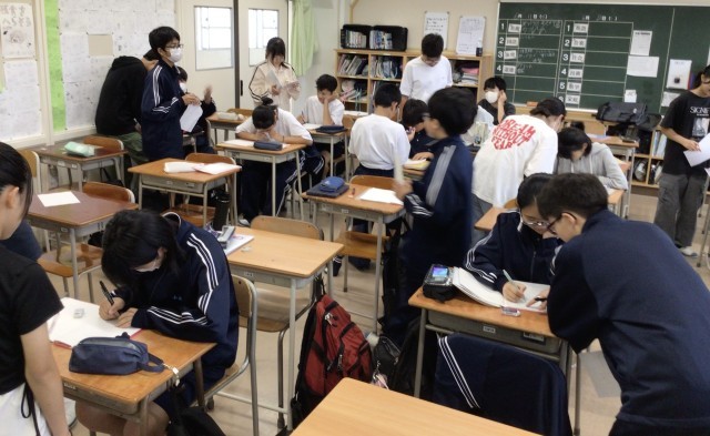数学の授業では、生徒が生徒に教えるという活動を大切にしています。