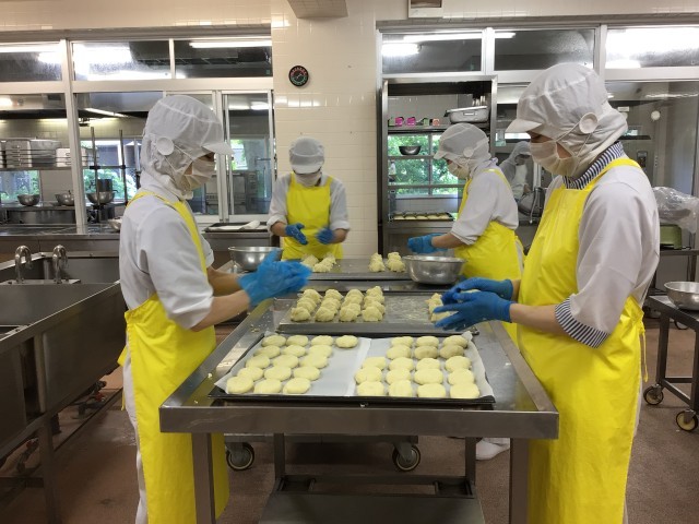 外の気温が高い日は、給食室の室温も上がり大変ですが、衛生に気をつけて安全な給食を作っています!