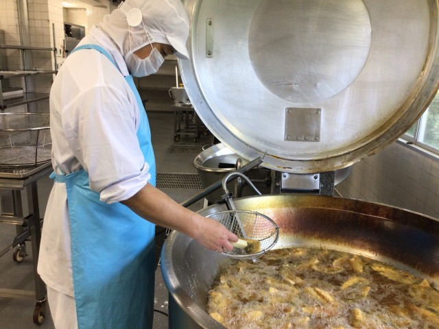 揚げ物をしている釜の前は暑くてずっと立っているのが大変ですが、