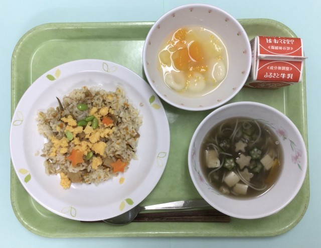 七夕ちらしずし、七夕汁、フルーツ白玉、牛乳