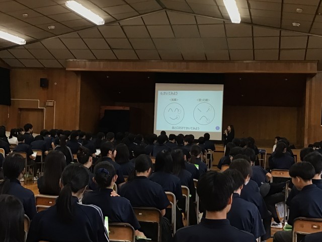 表情の印象やお辞儀、言葉遣いについて、実演を交えながら、分かりやすく楽しく指導を受けました。