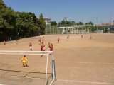 3連休初日の午後、体育館では女子バスケットボール部が練習を、校庭ではサッカー部...