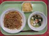 <献立> ・塩焼きそば ・豆腐と青菜のスープ ・りんご蒸しパン ・牛乳 <主な食...