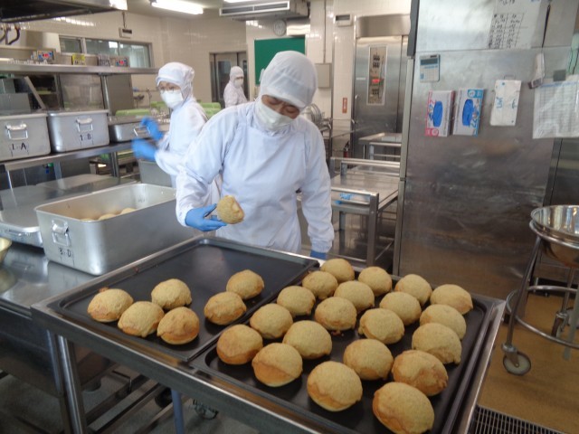 セサミビスキュイパンが焼き上がり、配缶しています。