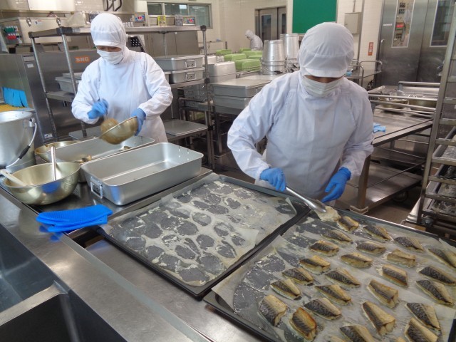 1枚1枚、異物がついていないか確認し、数を数えながらバットに並べます。