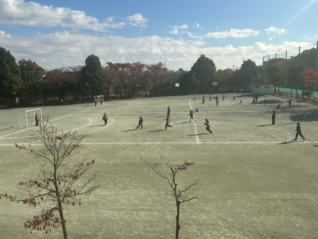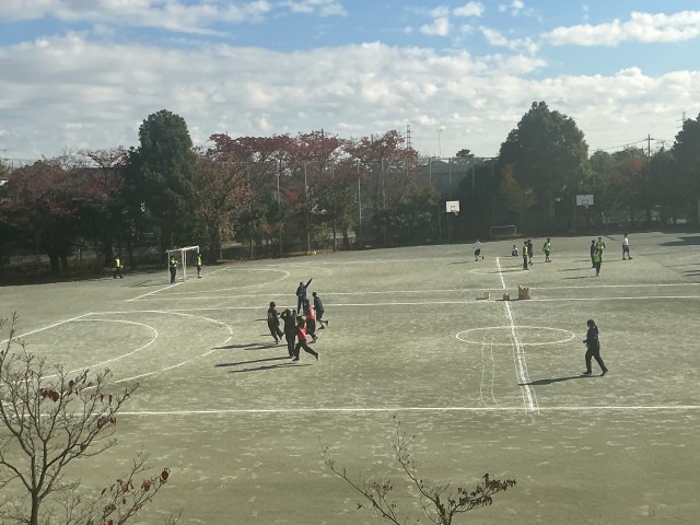 生徒たちはパスやシュートの基本を学びながら、楽しく体を動かしていました。