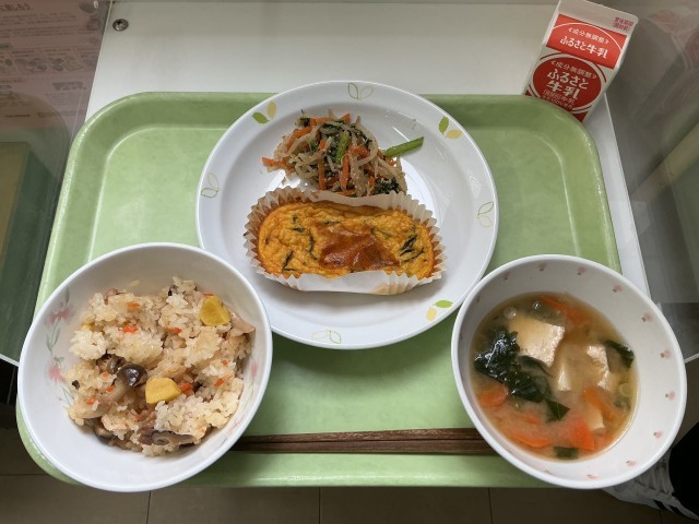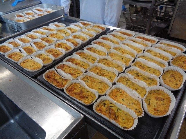 今日は野菜以外の食材も使い、卵液と混ぜ合わせて、カップに流してオーブンで焼きました。