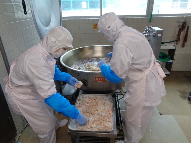 フライドチキンを揚げているところです。