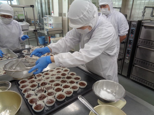 ざるとスプーンを使ってまんべんなくかかるようにしています。