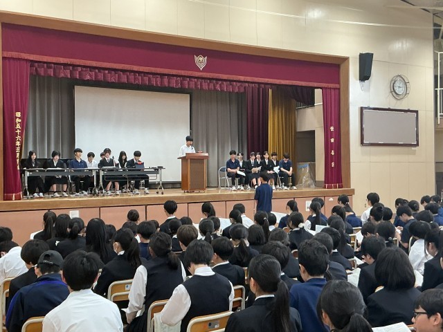 6校時に生徒総会が行われました。議長団、発表者、質問者の皆さん、それぞれしっかりと発言していました。これから、皆さんで協力してよりよい学校生活にしていきましょう。