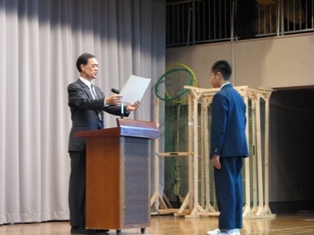 東京都産業振興会作文で最優秀賞、世田谷区読書感想文、税の作文、そしてバドミントン部、卓球部の表彰です。