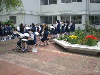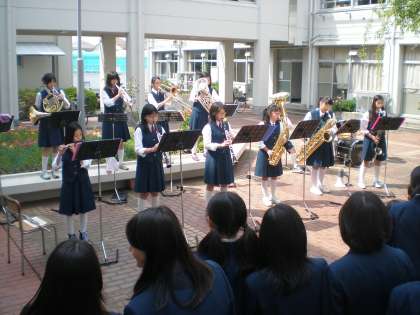 昼休み(中庭)と放課後(音楽室)に、吹奏楽部のミニコンサートがありました。