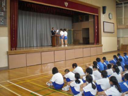 朝礼で、テニスとバドミントンの表彰がありました。