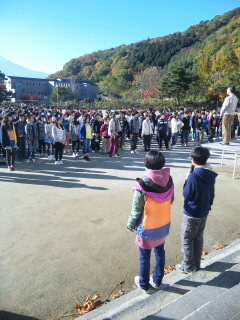 一年生は富士山五合目あたりの奥庭荘、二年生は湧水の里水族館へ向けて、 全員元気に出発しました。