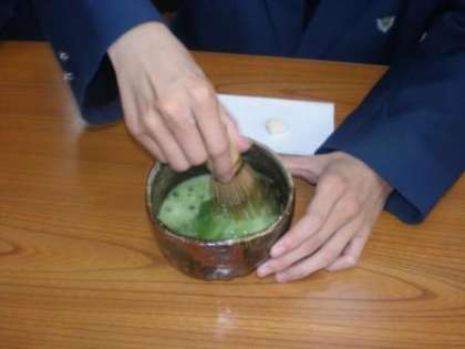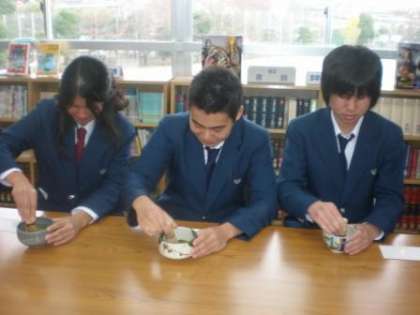 和室では正座をしてお茶会を体験し、図書室では、自分で自分の抹茶を点てました。「おいしい!」といって何服もおかわりする生徒もいました。