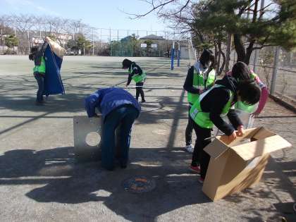 12月7日(日)、避難所運営訓練が、本校で行われました。当日は、10名のボランティア生徒が参加し、バーナー操作や仮設トイレ設置のお手伝いをしました、