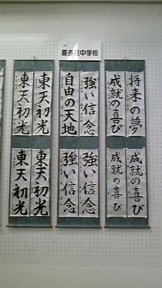 国語(書写)・美術・家庭科・技術で校内の優秀作品が展示されています。