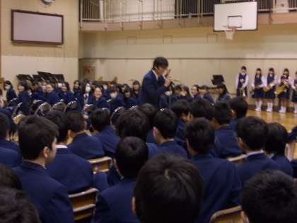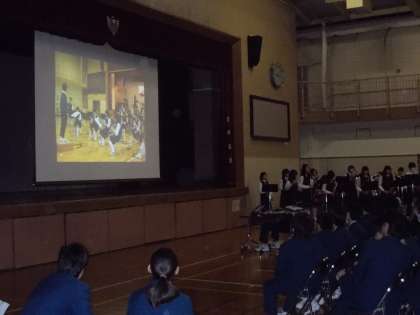 各部活動や各クラスからのビデオレターがあり、三年生は、大変喜んでいました。また、吹奏楽部は、演奏付きのビデオレターを発表しました。
