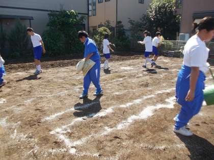 9月2日(水)、いよいよ大蔵大根への取組が始まりました。今日は、アグリシート撤去・肥料やりを行いました。
