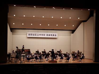8月29日(土)、世田谷区民会館大ホールにて、世田谷区中学校音楽発表会が行われました。本校も、午前の部で、先日の吹奏楽コンクールで金賞を受賞した曲を演奏しました。金賞を受賞したとあって、生徒たちも自信をもって演奏していました。