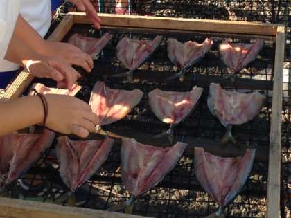 漁業体験、次は昨日の干物づくりの鯖を干す作業。木曜か金曜には届けられます。