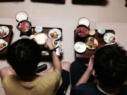 京都の宿、祇をん新門荘の夕食はそれぞれの部屋でいただきました。