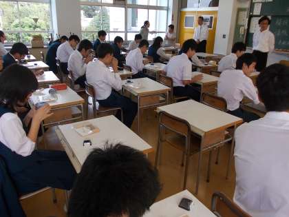 10月6日(火)、3年美術で、和菓子のレプリカ制作の授業が行われました。まずは、本物の和菓子の味やつくりを学ぶところから始めました。