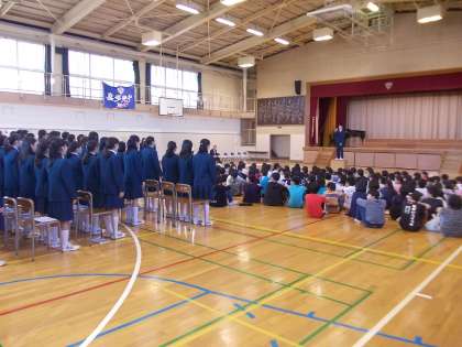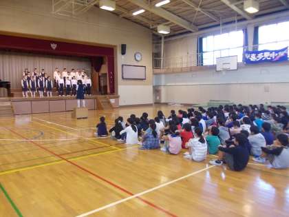 10月19日(月)、喜多見小学校6年生の児童のみなさんをお招きして、喜多見中学校3年生が、歌を披露しました。3年生は、本番さながらのように歌い、小学生の良きお手本になりました。