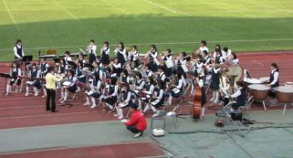 また、喜多見中学校と船橋中学校の合同吹奏楽部が準決勝、決勝、閉会式で演奏を行いました。写真は閉会式の様子(5月2日)。