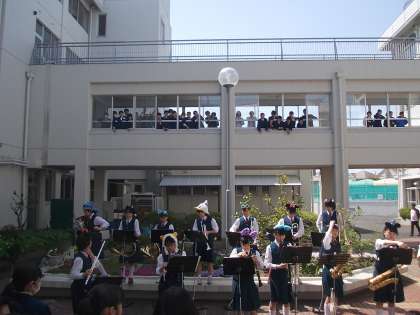 4月15日(金)の昼休みに吹奏楽部の中庭コンサートが行われました。みんな楽しいひとときを過ごしました。