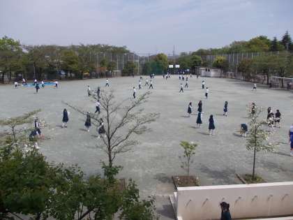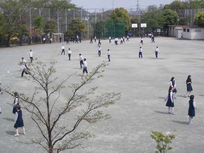 4月20日(水)、昼休みの校庭は、生徒の声でにぎわっています。みんな身体を動かして楽しそうです。