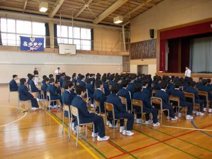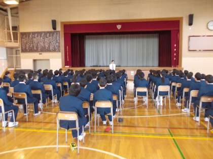 4月25日(月)、新しい1週間の始まりです。1年生は体育館で道徳の授業を行っています。生命の大切さ、支えあう大切さを、ある人の生き方をとおして学習しています。
