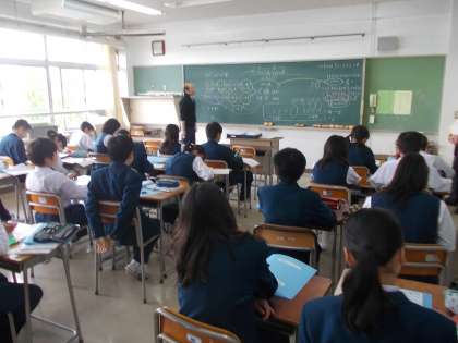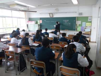 5月6日(金)、連休の合間の金曜日です。今日から試験1週間前に入りました。1年生の数学では、少人数授業で「正負の数」を学習しています。クラスによって問題を工夫しています。