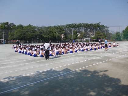 5月23日(月)、今週から運動会の練習がはじまりました。今日は6時間目に全体練習です。校長先生、実行委員長の話の後、ラジオ体操や行進の練習をしました。運動会は来週の土曜(6月4日)です。