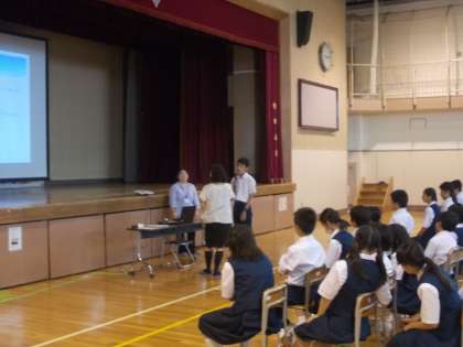 7月1日(金)、6時間目に全校で薬物乱用防止教室を行いました。砧総合支所の保健師の方々を招いて、薬物の怖さやその影響について知識を得ました。また友人等から誘われたときの断り方など、ロールプレイングで学びました。