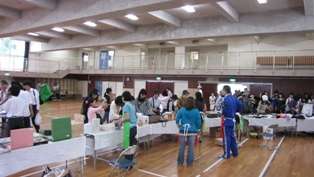昼休みに体育館で行われ、たくさんの方に協力をいただきました。